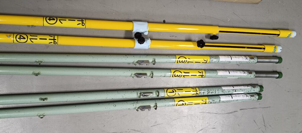 もともと同一の3セット(6本)でありますが、長年の経年劣化につき状態が変化したため、各支柱に名称を付けて個別管理することになりました。歪みなどから伸ばして使えないものもございますので、ご希望のものを確認し、団体利用の予約申請時や希望申請時には、どのポールか正式名称をはっきり記入して申請してください。